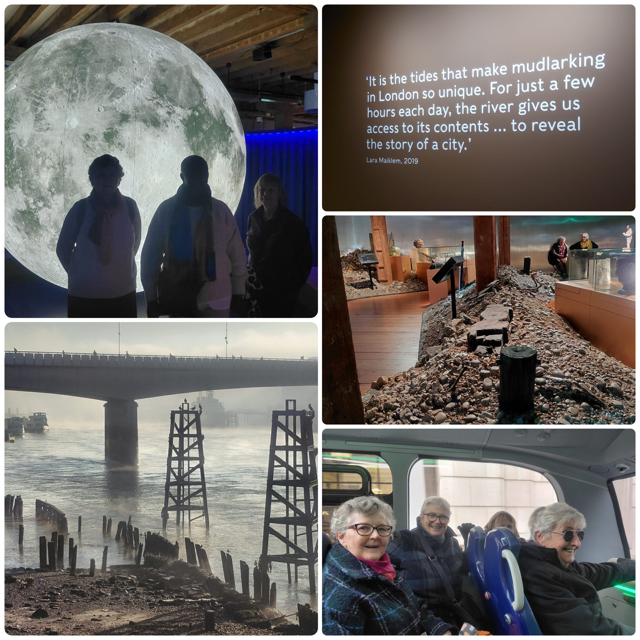 A group of us enjoyed a ride on the Superloop to visit Secrets of the Thames: Mudlarking London’s Lost Treasures, the exhibition at the Museum of London Docklands. This was a great follow up to our previous talk and our own experience of mudlarking with the WI. The exhibition provided a real insight into our past and covered exciting finds as well as featuring several mudlarkers who explained their fascination and enjoyment of this hobby.