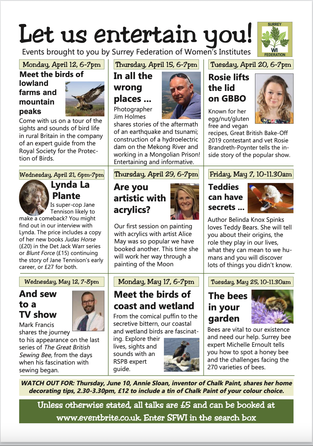 Child Bereavement UK – online baking competition SFWI’s APRIL Virtual Events Flyer
