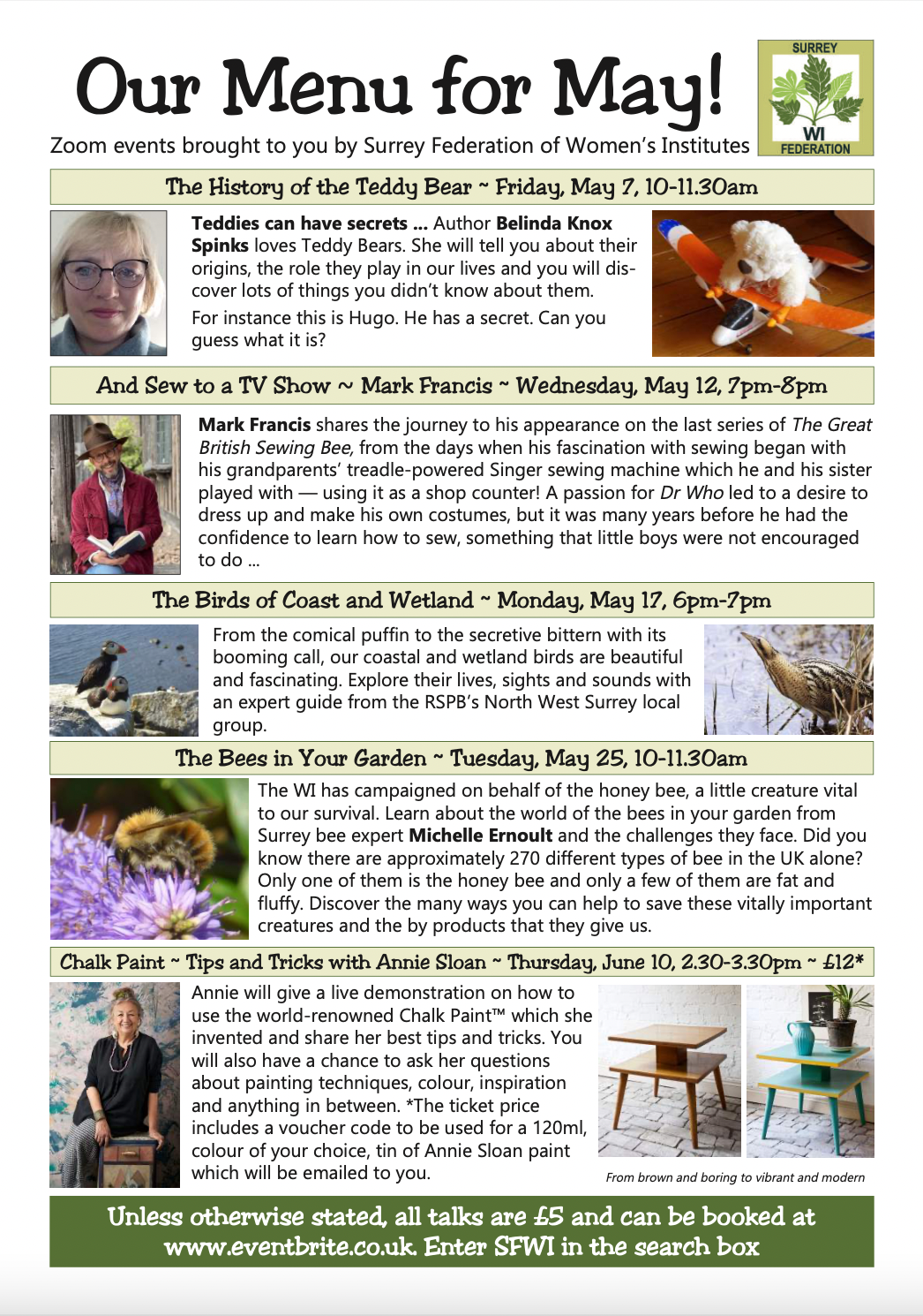 Surrey Federation have Annie Sloan (of chalk paint fame) and Mark from The Great British Sewing Bee on their programme.