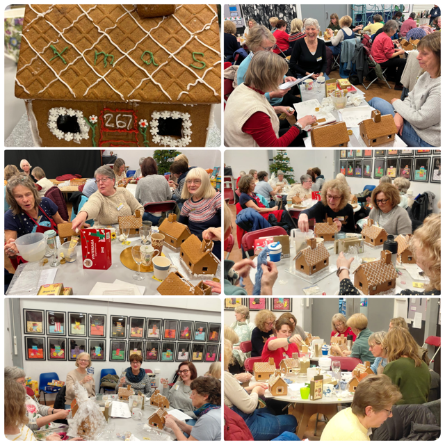 A fun and festive evening was had at our December meeting when we overcame our creative fears to glue and ice our gingerbread houses while sipping some festive fizz. It was a great opportunity to have a chat while we braved very sticky fingers and encouraged each other to just have a go at making these delightful edible decorations.  Really lovely results from everyone!