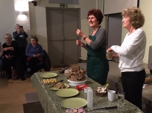 2016 GBBO runner up Jane Beedle was our speaker for November. She gave us the low down on what it’s like in the tent and how she got there in the first place. She did all this whilst decorating a cake with hazelnut ganache, which we got to share afterwards. Multi tasking indeed! One of the committee was caught licking the plate afterwards – I won’t say who. Ok – it was me! ;).
